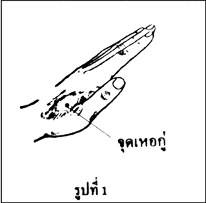 วิธีหาจุด : อยู่หลังมือต่ำกว่านิ้วชี้ประมาณ 2 นิ้วมือ และห่างจากหัวแม่มือประมาณ ½ นิ้วมือ